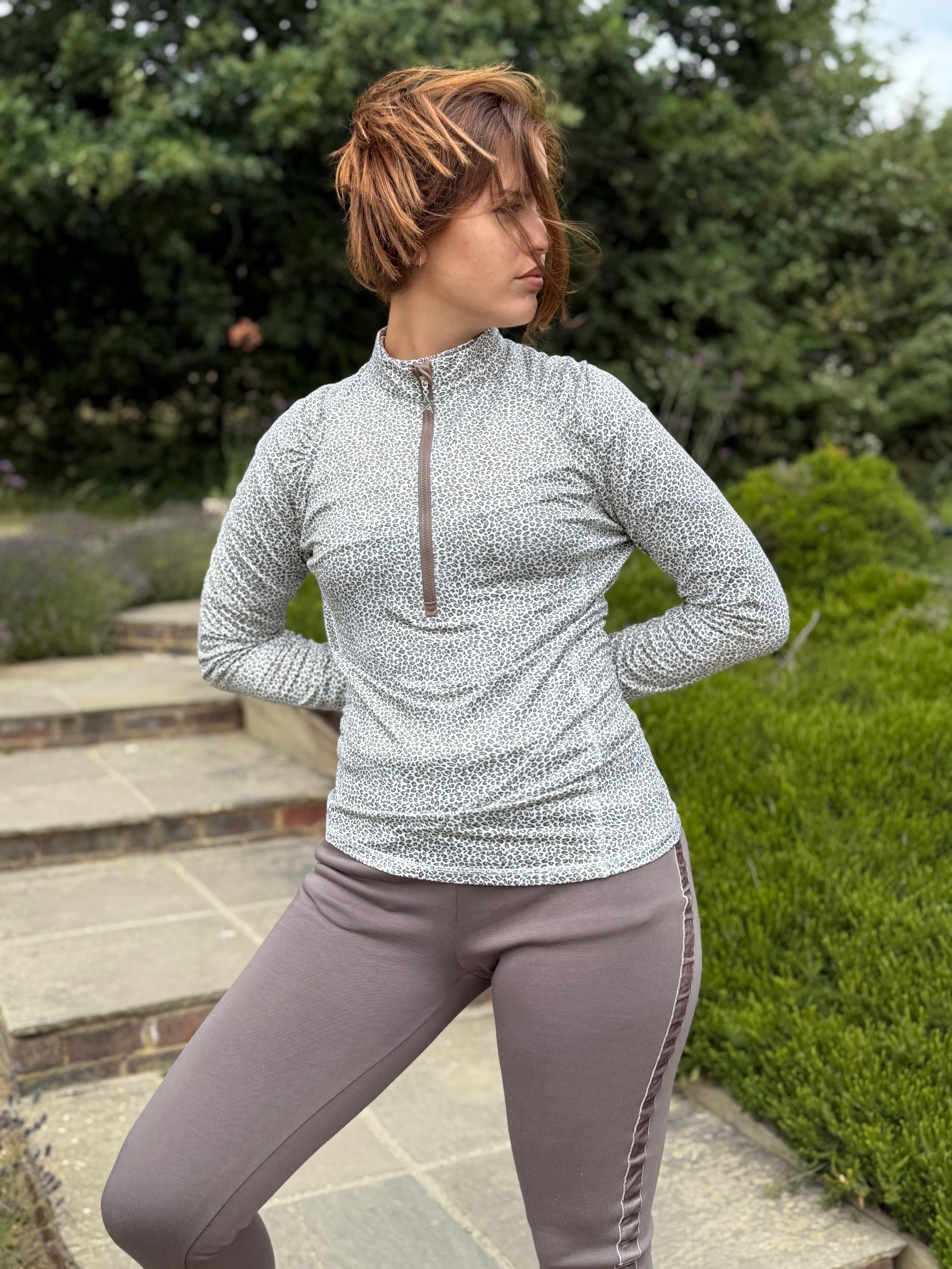In order to keep you cool, comfortable, and dry on the warmest, most humid days, the Elaine turns perspiration into refrigerant, which cools your skin by 3 to 5 degrees. Additionally, this garment includes antimicrobial, moisture-wicking, and SPF 30 +sun protection built right in. The mesh underarm panel of this design adds comfort and breathability. For all athleisure-related activities, wear our Elaine Full Pattern Lightweight ¼ Zip.