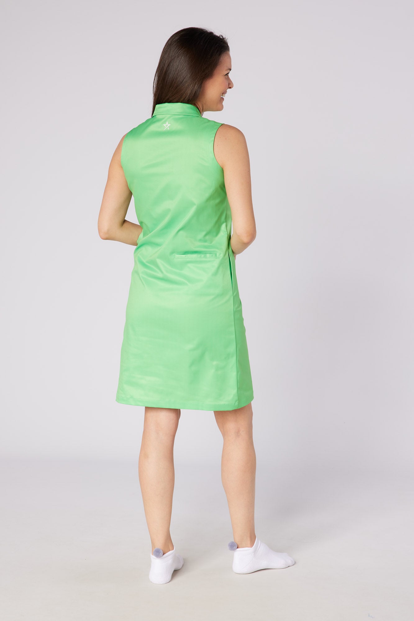 The Strike stitch Sleeveless Dress is a fresh design for the upcoming Spring Summer season. This dress is not only stylish but also simply designed for on off course wear. It has a way of making you feel confident and comfortable when on. It offers flexibility and freedom of movement but provides a structure. The dress is designed with your comfort in mind, being breathable to keep you cool during hot summer days and with important side hidden pockets.