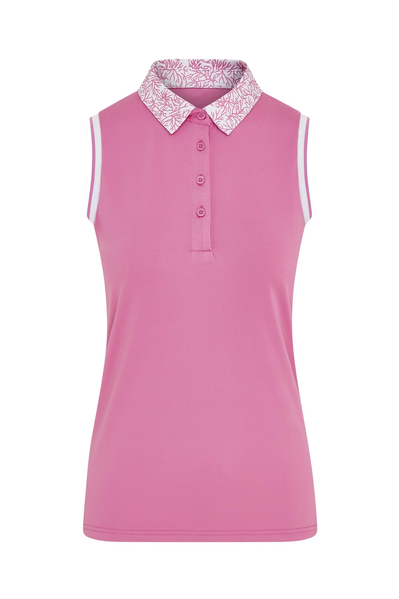 The Luca pattern block button Polo is a stylish piece of clothing you'll want to add to your wardrobe. It boasts a unique pattern that's sure to turn heads and comes in two variations - cap sleeve or sleeveless, to suit your preference.