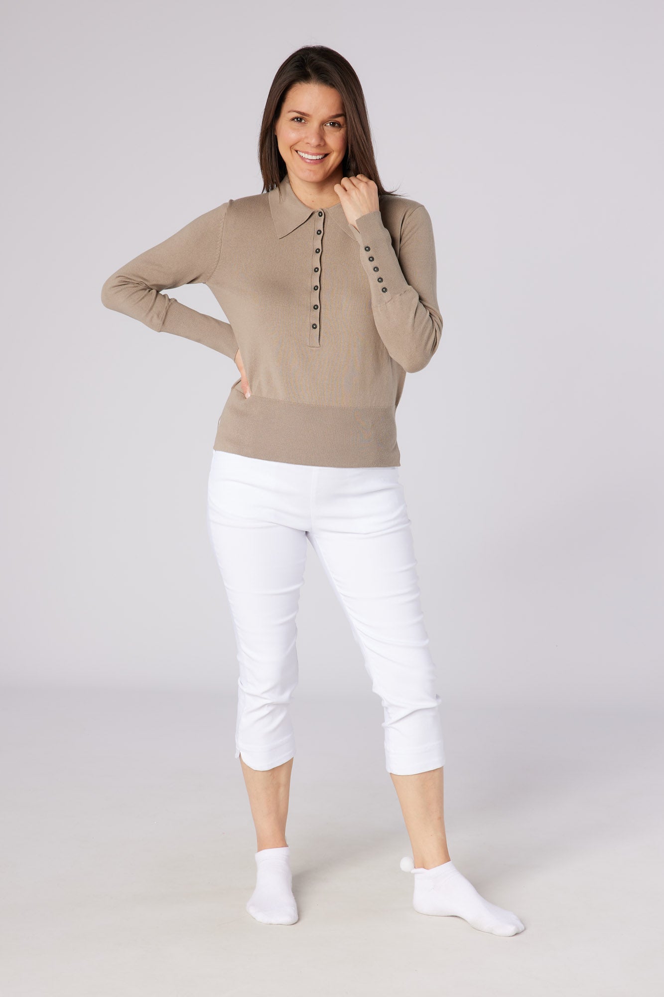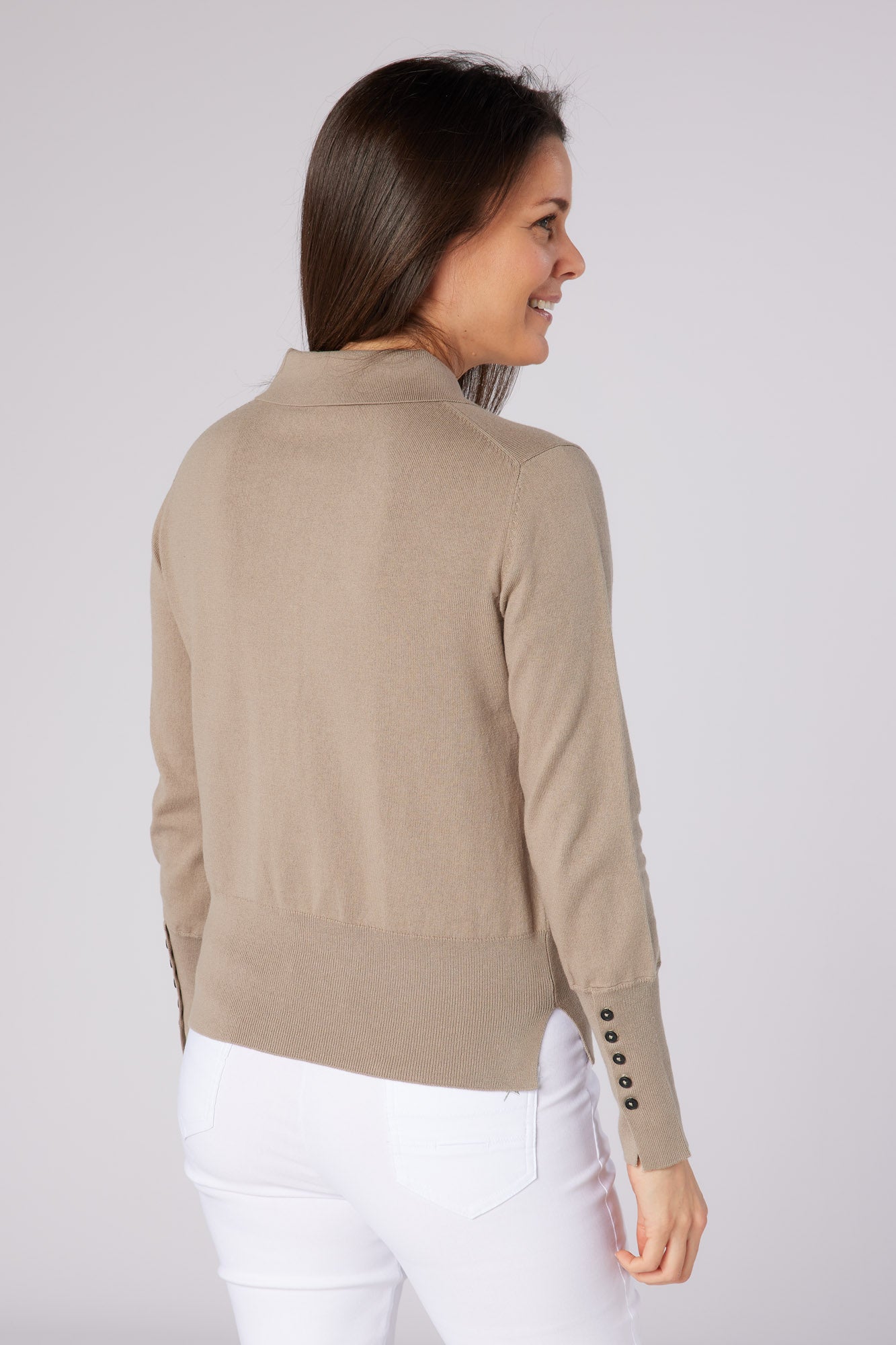The Blush is a great plain Cotton sweater with a twist. Using a traditional polo design and pearl buttons it is both delicate and robust!! This collared sweater is not only stylish but also incredibly soft to the touch, thanks to its ultra-soft cotton stretch fabric. It offers a regular fit, ensuring comfort and ease of movement during your golf games. This sustainable piece is perfect for those who love golf and care for the environment. It's comfortable, fashionable, and eco-friendly and can be worn as both a layer and by itself.