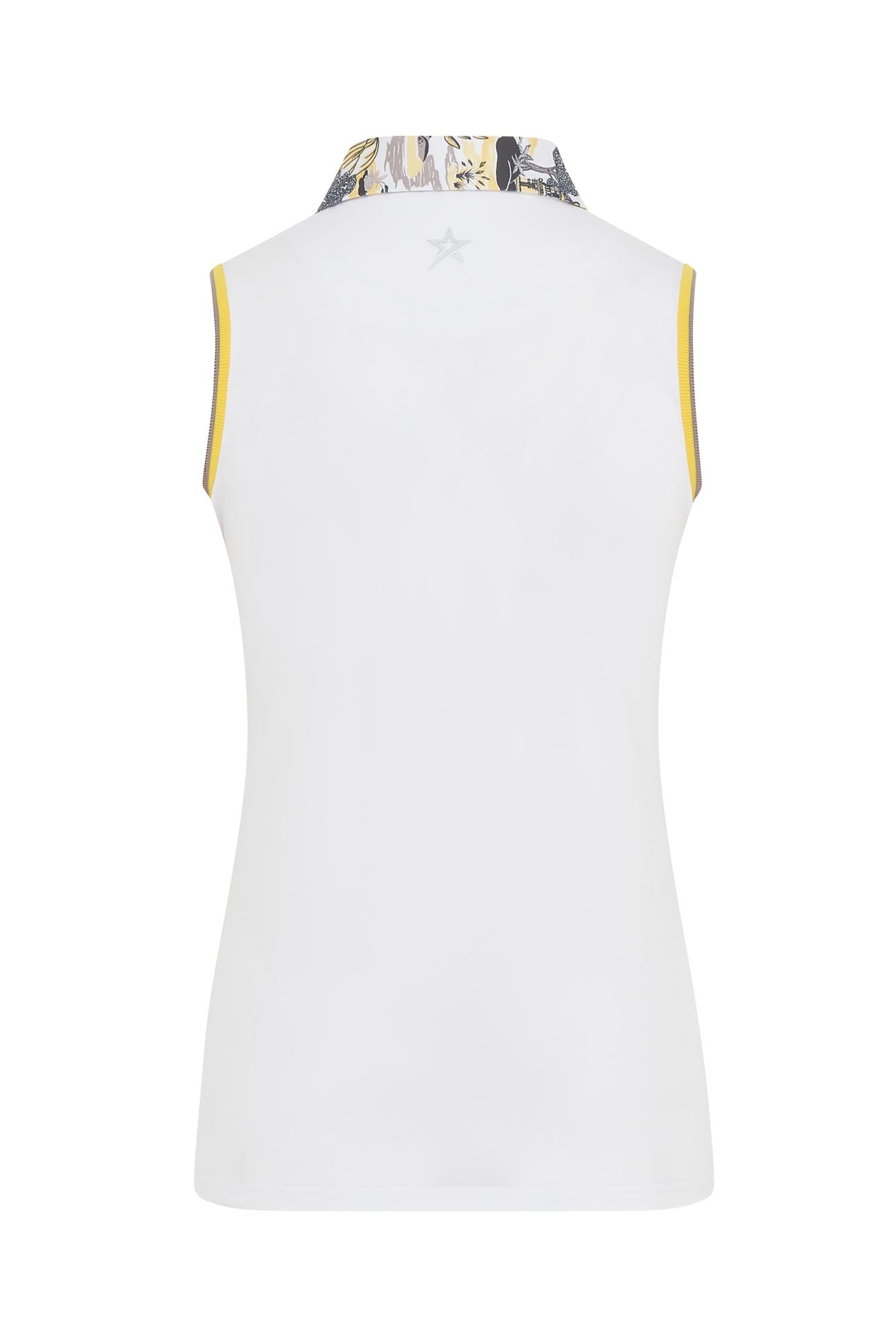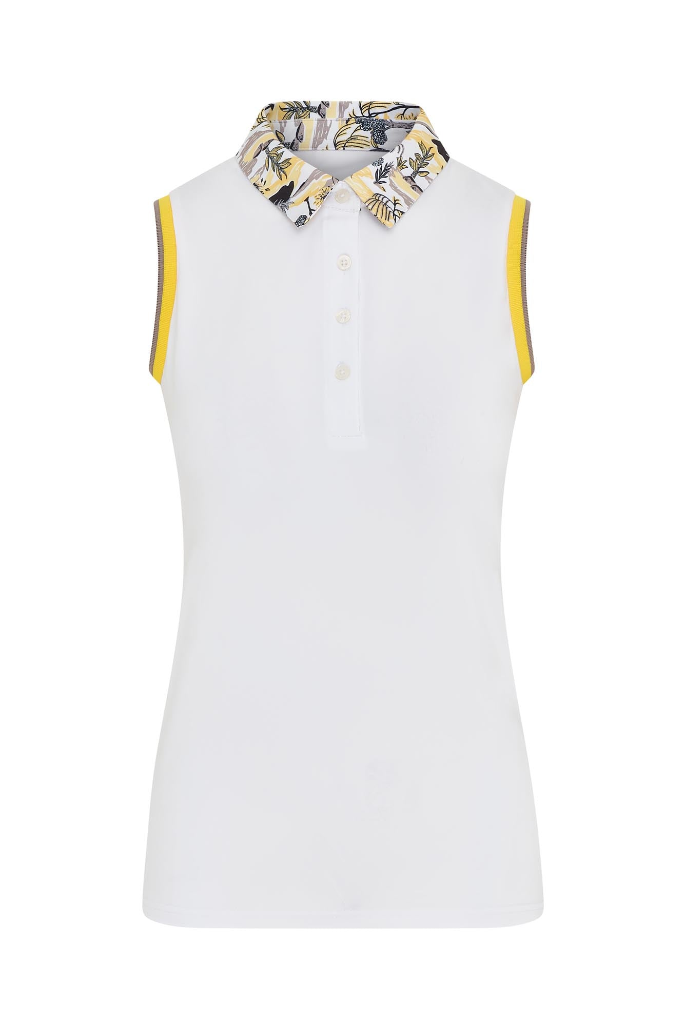 The Luca pattern block button Polo is a stylish piece of clothing you'll want to add to your wardrobe. It boasts a unique pattern that's sure to turn heads and comes in two variations - cap sleeve or sleeveless, to suit your preference.