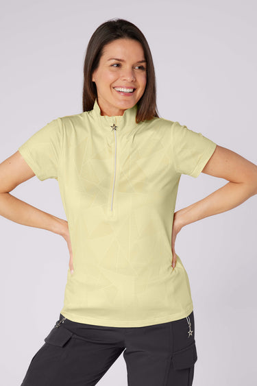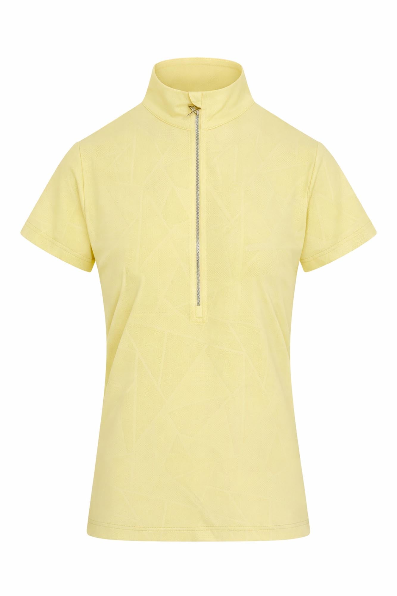 Meet the Mirage Polo, a versatile addition to your wardrobe. Whether you prefer a cap sleeve or a sleeveless style, this elegant plain shirt with unique embossed patter can easily be paired with any outfit, making it a go-to choice for any occasion.