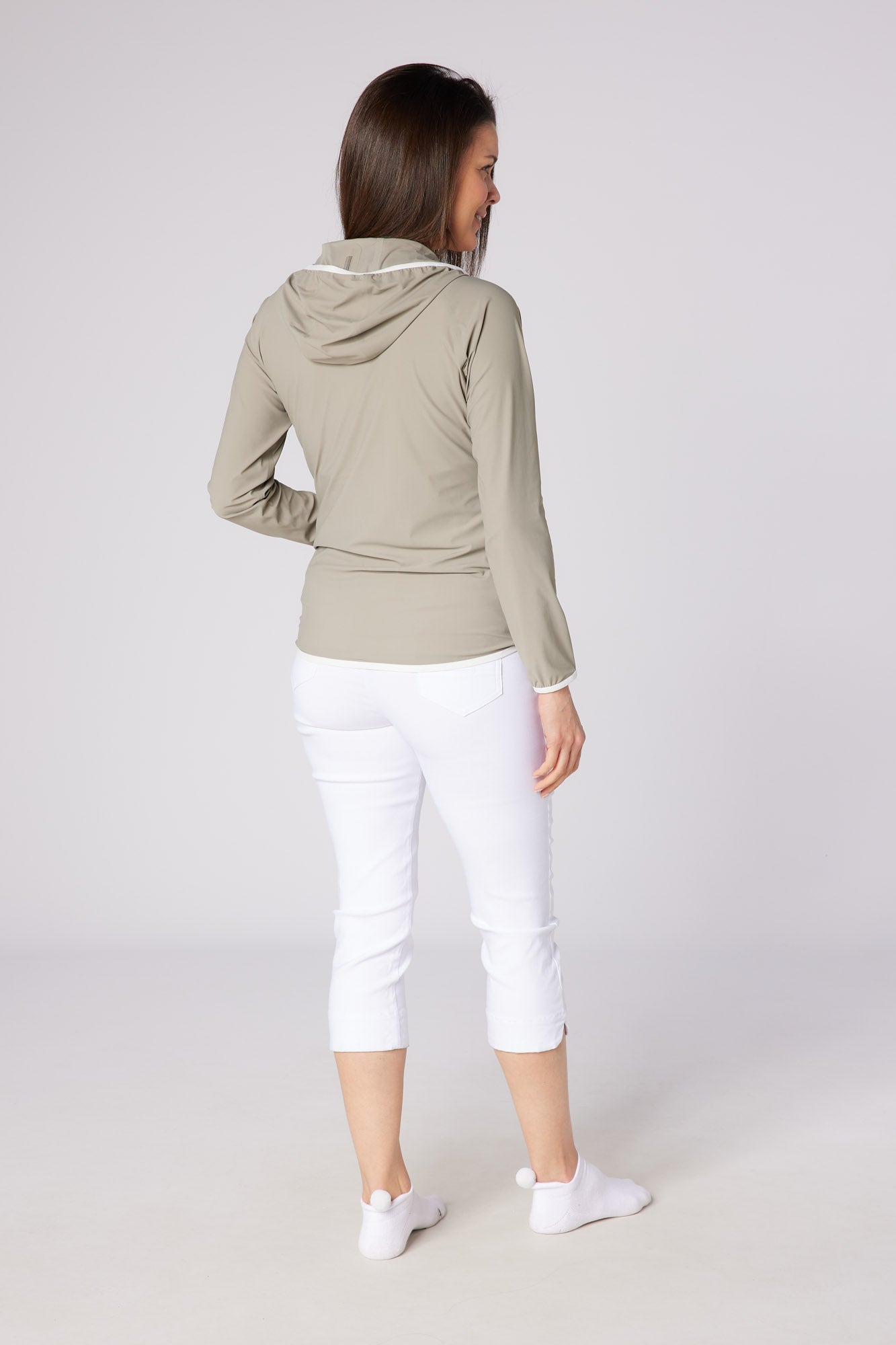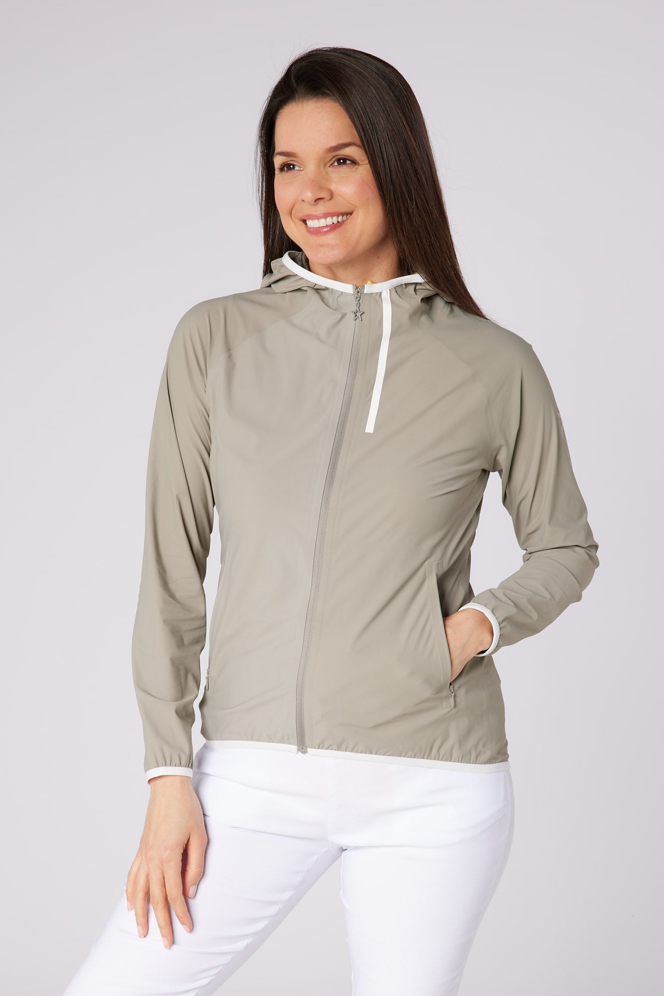 The Panther Jacket, a prestigious product in our Elite Collection, is a fantastic new member of our Swing Out Sister Family. This jacket is ultra-lightweight, making it easy to carry and comfortable to wear. The soft and quiet fabric ensures a peaceful and cosy experience, while the full stretch wind-resistant design keeps you protected against the elements. The Panther Jacket's slim fit ensures a stylish look, and the contrast cuff and stripe add a pop of design interest. The unique feature of stitchless seams promotes enhanced movement, giving you the freedom to swing, stretch, and stride with ease. A fitted hood, with a special zip detail for long hair, ensures your comfort and convenience. Plus, the jacket's breathability ensures you stay cool and dry, even during the most strenuous activities.