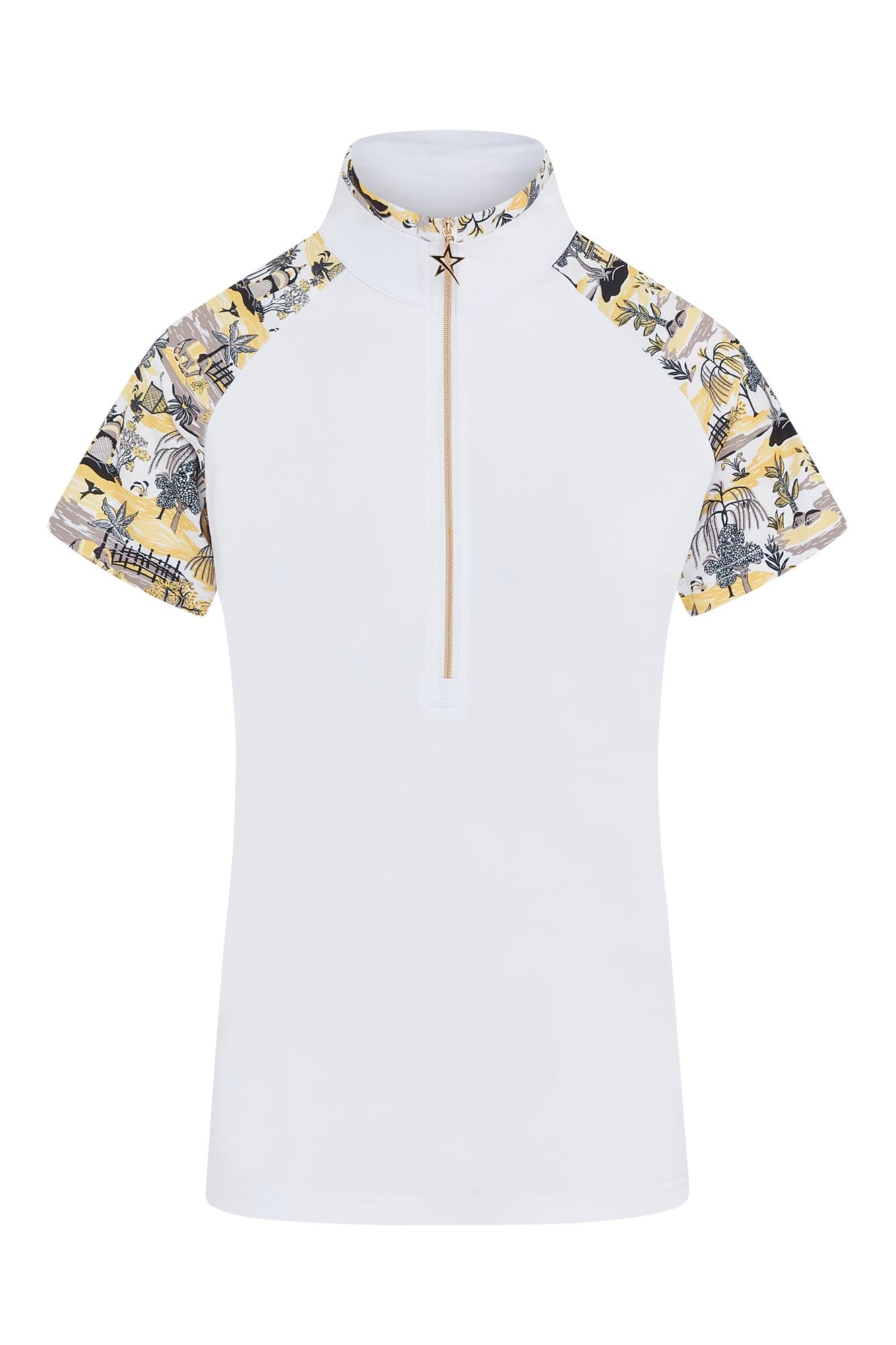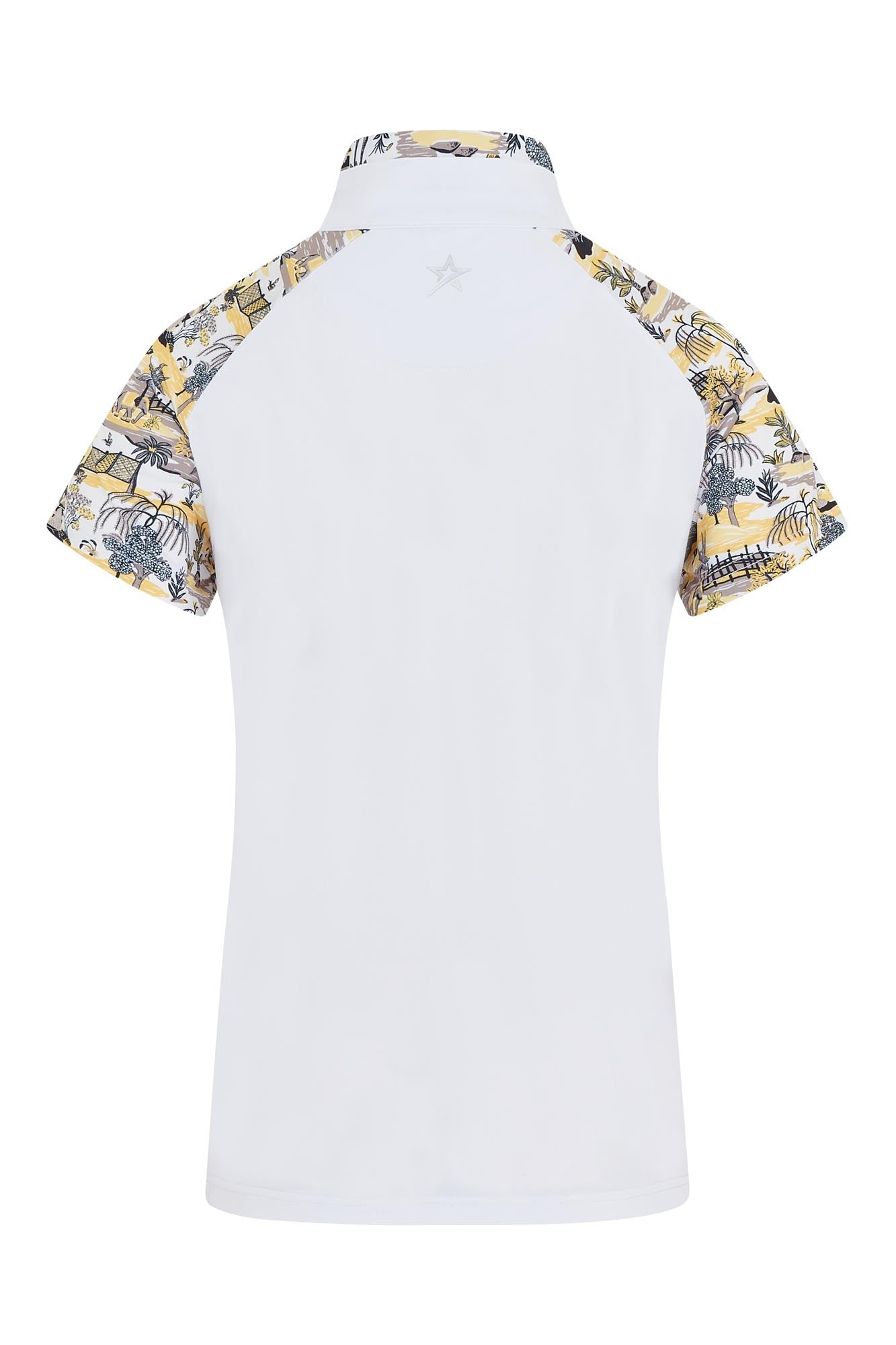 The polo also flaunts a contrasting pattern on the shoulder and neckline, with zip detail adding a unique touch. Plus, it's easy to care for, making it a practical choice for everyday wear.