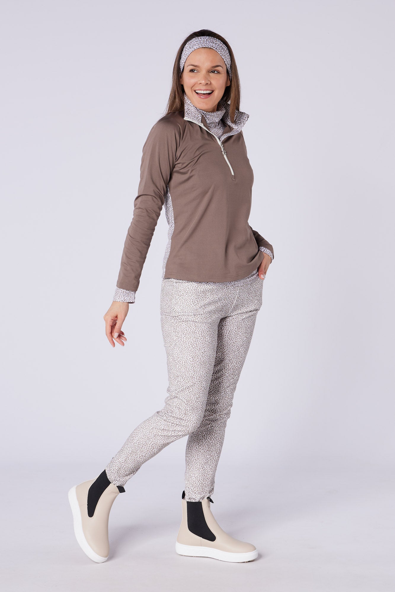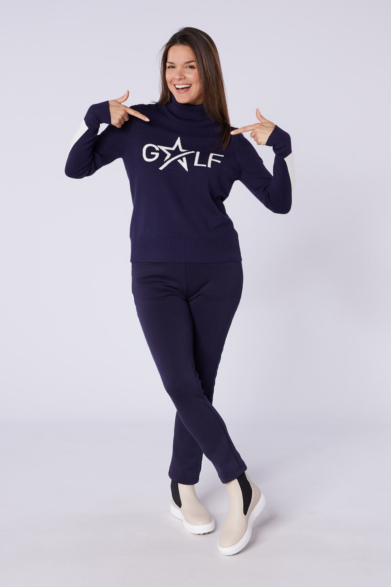 This waterproof pull-on Chelsea style boot has a unique sole unit with built in winter cleats providing both stability and flexibility when playing golf in the winter. It also looks great with jeans, or joggers away from the course and both the Tanya & Harper trouser tuck neatly inside for those annoying days when muddy puddles splash us.