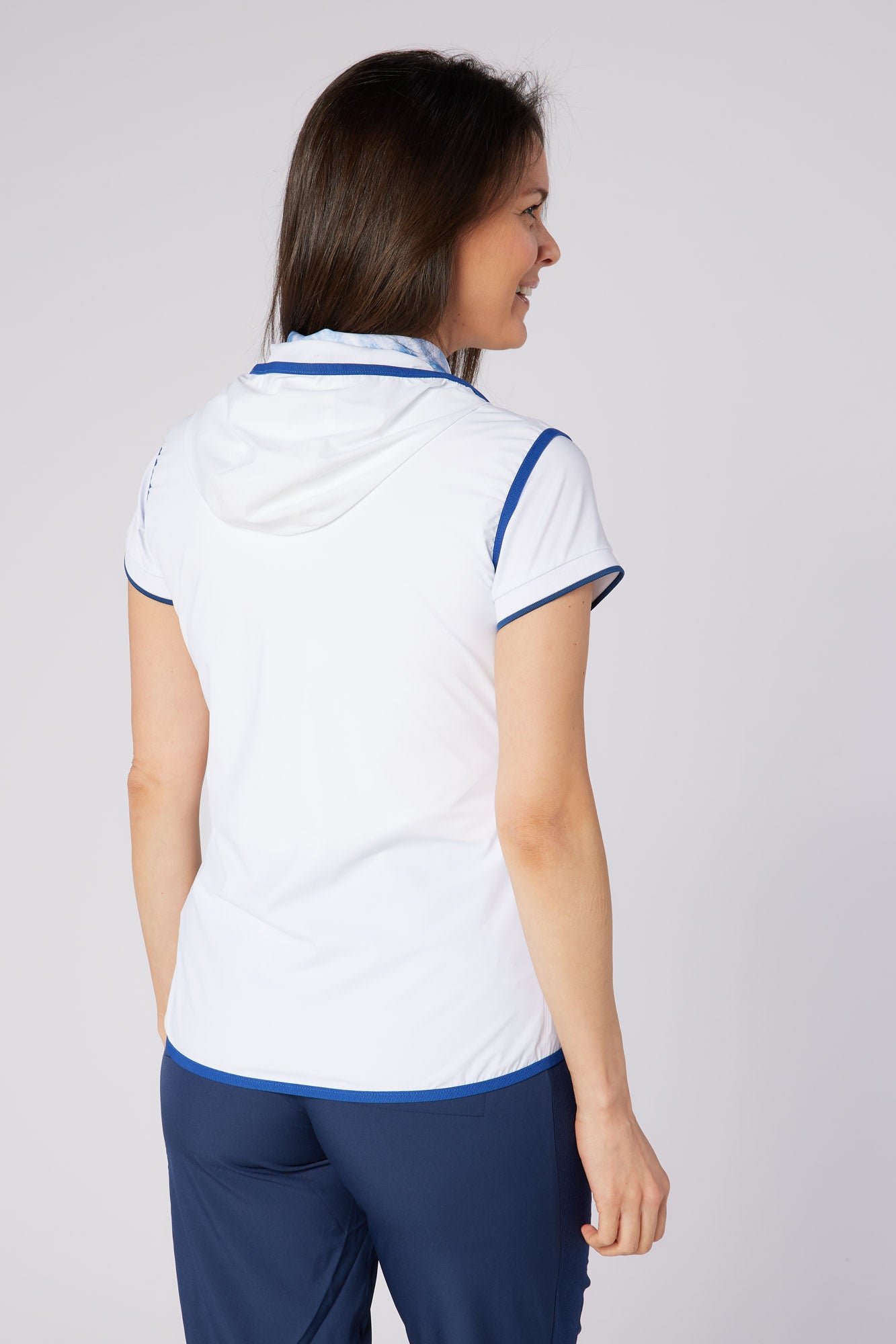 It's a full stretch, wind-resistant active top designed for those who love to stay active regardless of the weather. The elastic gathered bottom ensures a snug fit, while the contrast cuffs add a stylish touch. One of its unique features is the stitch less seams, which not only give the top a sleek look, but also enhance movement, making it ideal for any vigorous activities. It also comes with two pockets, offering convenient storage for your essentials.