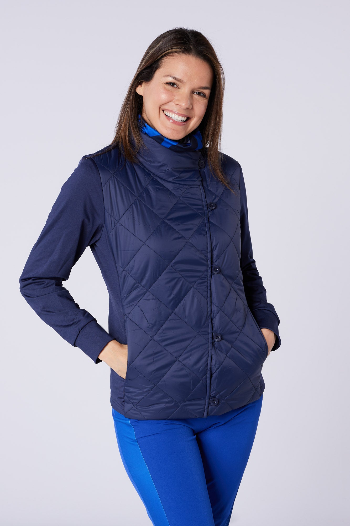 This storm repellent, ‘heat-tech’ active Jacket is part insulated with 100% recycled eco synthetic fibres that are lightweight, water-resistant, and, most importantly, very, very warm! It also has super stretchy side panels, making it a flattering piece but also practical as you have no restriction when swinging. The stylish front overlap ensures no warmth can escape or cold can get in, finished off with stylish buttons. Like the rainbow that forms on a sunny wet day, Iris will be a standout piece this Autumn Winter.
