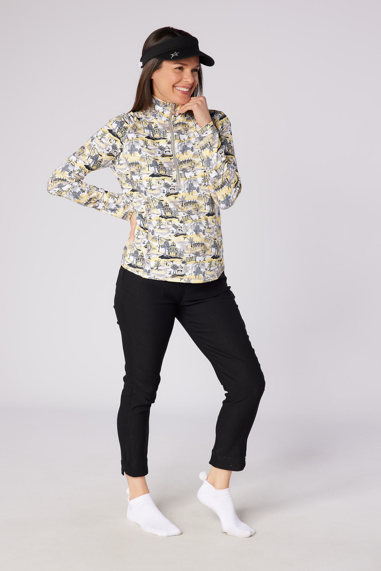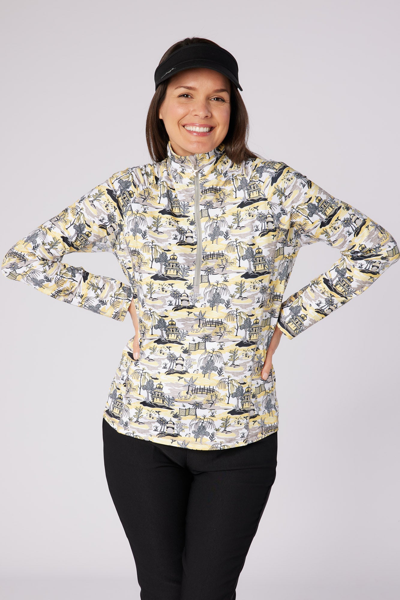 Meet the Sunshine Pattern ¼ Zip Long sleeve, a lightweight mid-layer that's perfect for your active wear collection. This piece features a mesh Arm Panel design, now enhanced with a new and improved overall design. The Sunshine is made from an ultra-soft 4-way stretch jersey fabric, ensuring a comfort fit that moves with you. It's breathable, keeping you cool during intense workouts. Plus, its moisture-wicking performance fabric ensures you stay dry, taking away sweat from your skin in an instant. The long zip detail adds a touch of style and practicality, making it easier to wear and remove. These top combines performance and style in one, making it an essential for your wardrobe.