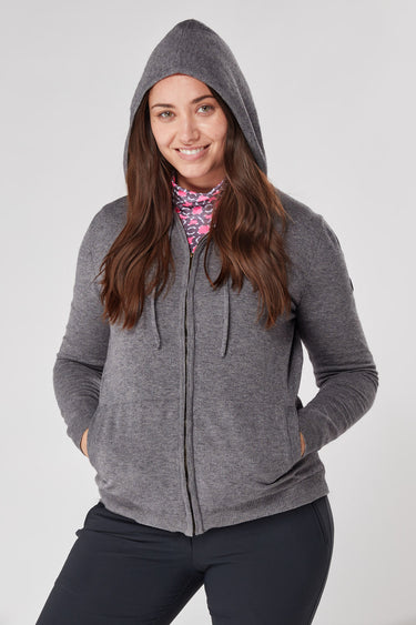 This feminine flexible AW cardigan with stretch lining comes with a hood and combines comfort, style, warmth and practicality out on the course. With its technical multi yarn mix and full stretch lining it offers a great outer layer to enjoy both on and off the course.