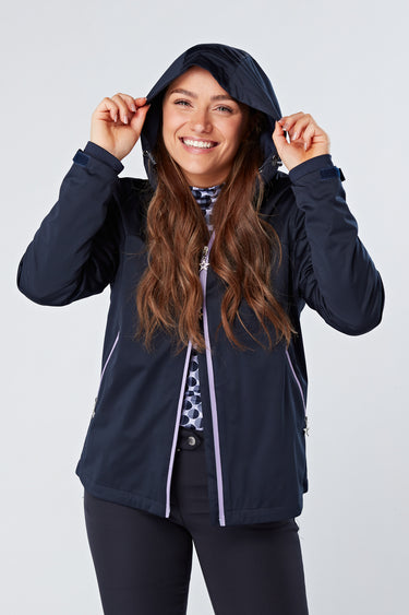 Play your best, whatever the weather with our fabulous new storm repellent jacket. Designed with a full-zip and side pockets it is a great addition to your AW wardrobe . A handy hood ensures that you keep dry during any downpours, while the soft-stretch fabric is windproof and fully mesh lined for maximum breathability, making it perfect for year-round wear. Elasticated toggles at the hem and collar, plus velcro tabs at the cuffs ensure maximum adjustability, comfort and protection against the elements .Even in the twilight of a round the reflective zips ensure you are more visible.