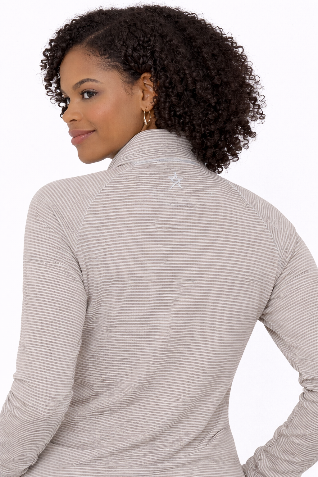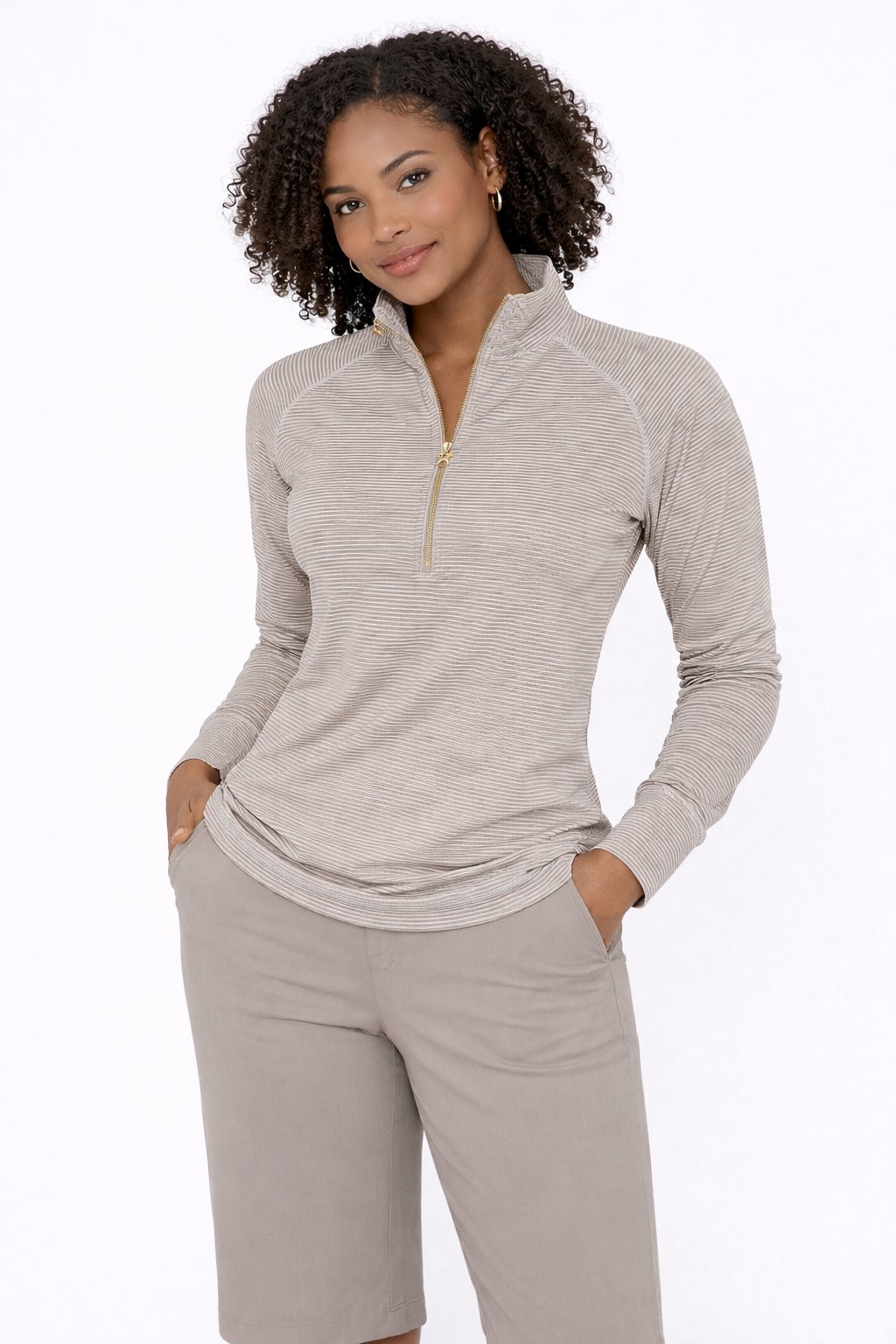 Back by popular demand, the Lottie Stripe ¼ Zip. Great on cooler days , early mornings or twilight adventures. This piece of clothing is relaxed with an ultra-soft, 4-way stretch fabric and double skin. The Lottie works to keep you at just the right ambient temperature.