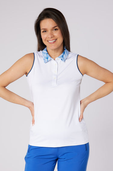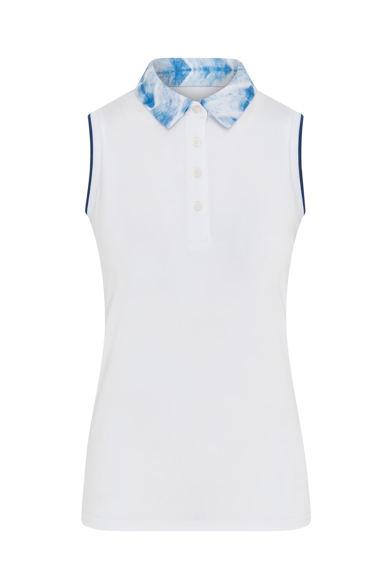 The Luca pattern block button Polo is a stylish piece of clothing you'll want to add to your wardrobe. It boasts a unique pattern that's sure to turn heads and comes in two variations - cap sleeve or sleeveless, to suit your preference.