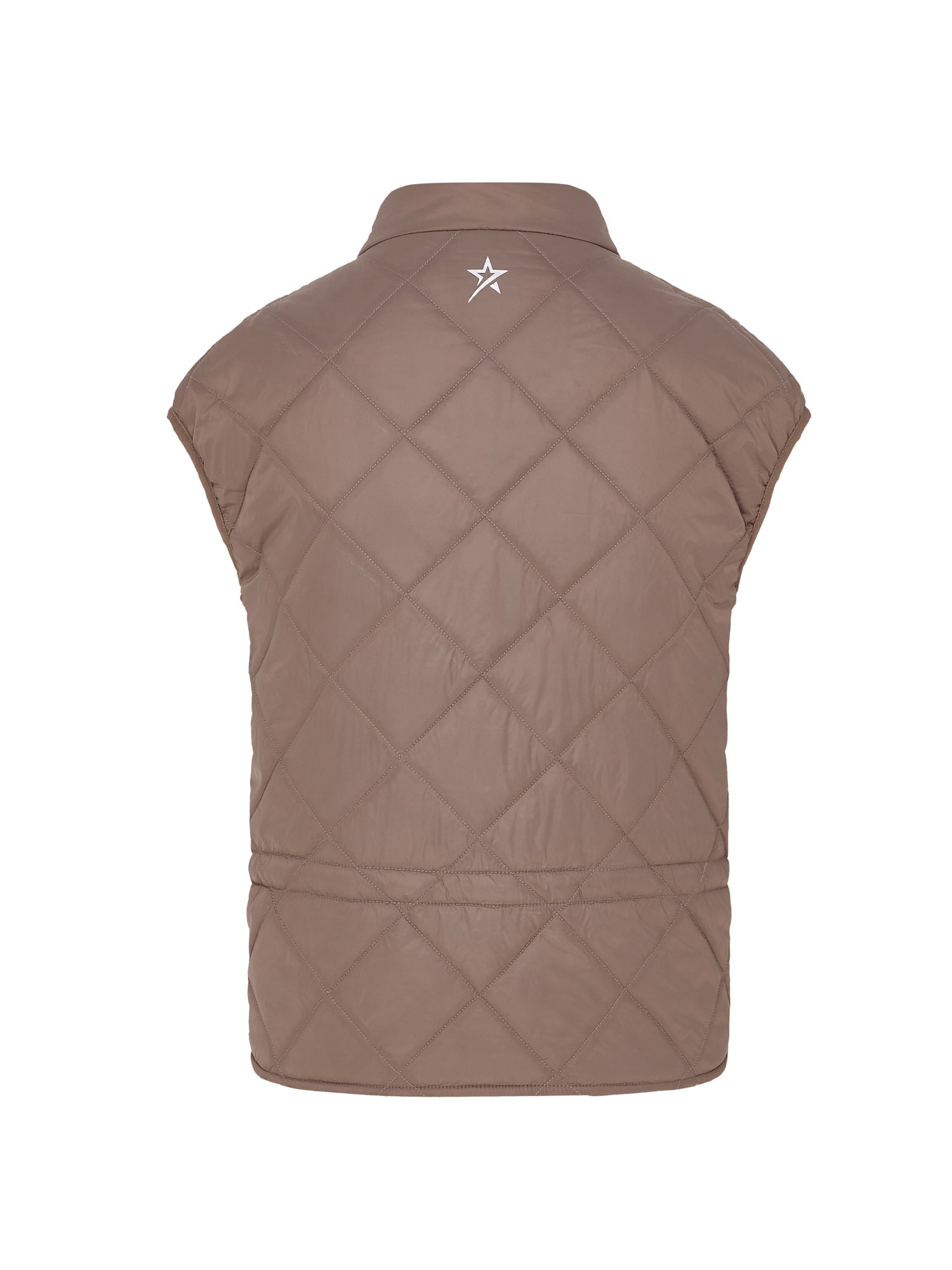 This stylish, lustrous ‘heat-tech’ quilted padded sleeveless vest is insulated with 100% recycled eco synthetic fibres that are lightweight, water-resistant, and, most importantly, very, very warm! Featuring a lower styled flat collar to reduce layers around your neck, this piece concentrates on style, comfort and the warmth of the body whilst still enabling you to play golf. It features two popper up front pockets for convenient storage pockets and a drawstring with cord stoppers at the waist to make a warmth hugging, fitted look.