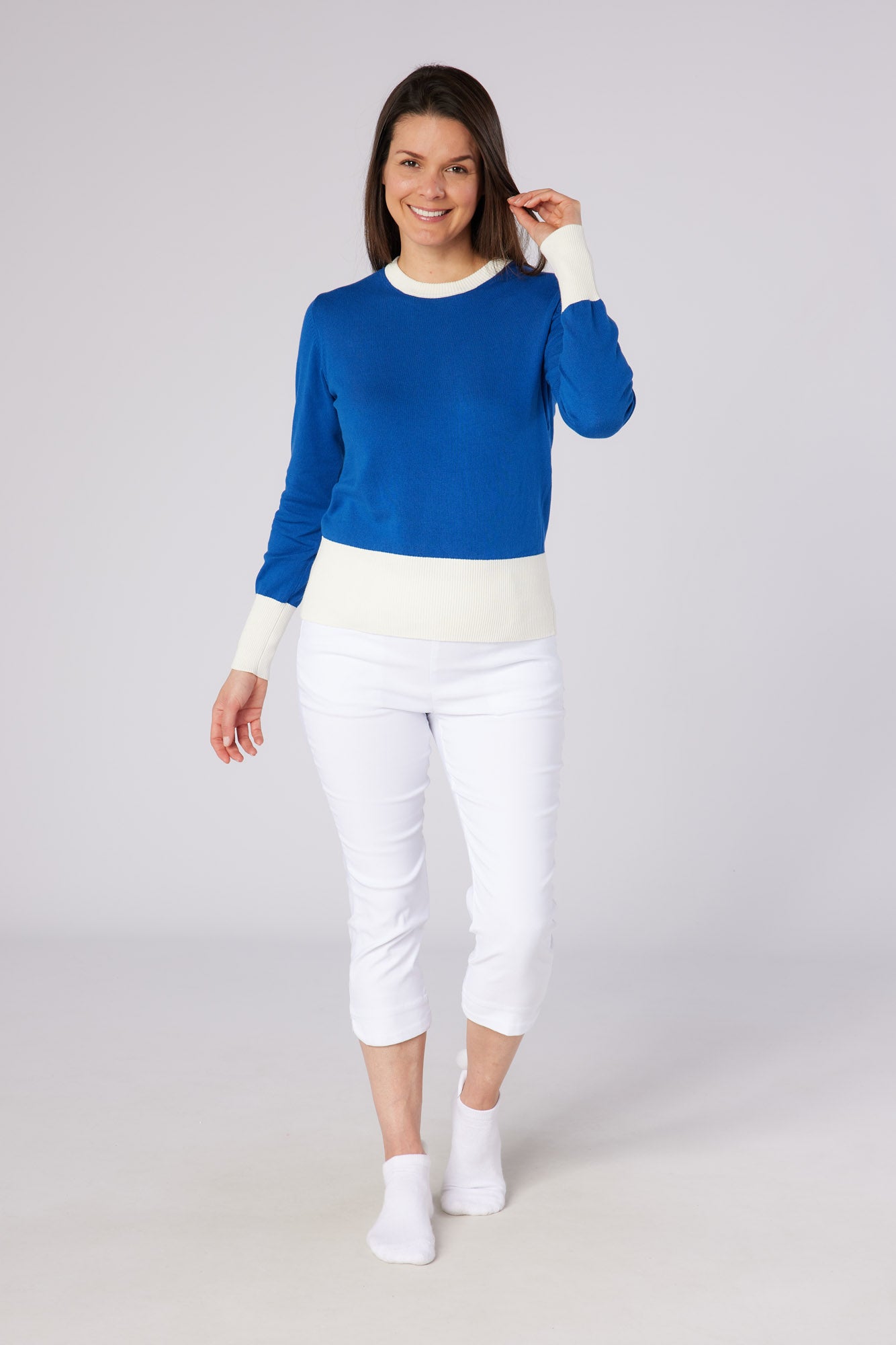 - Contrast knit stripe
